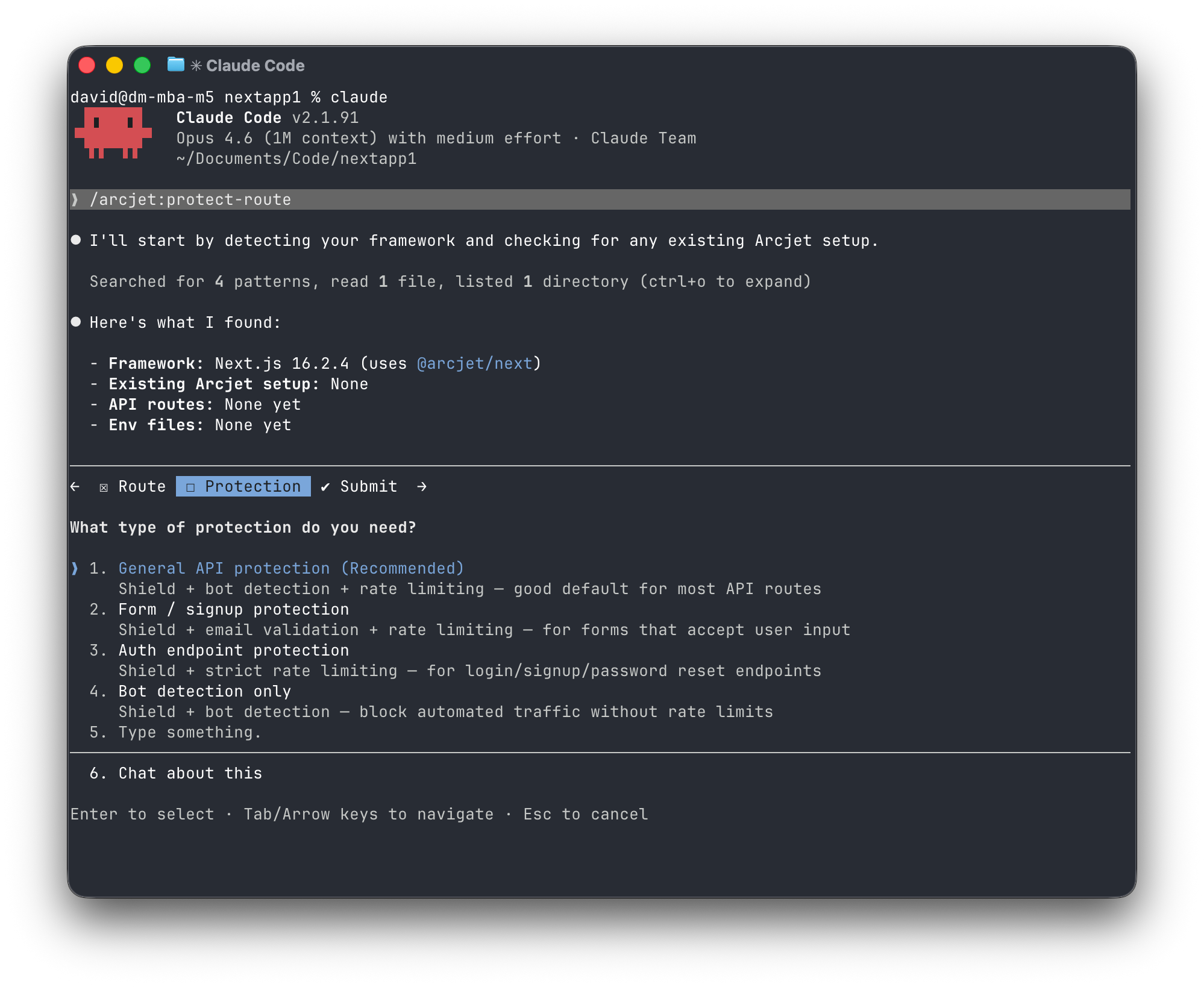You can see what this looks like in practice today. A developer working in Cursor or Claude Code with the Arcjet plugin installed asks the agent to protect a new signup route. Now the agent can load skills to understand the right SDK patterns for the framework they're in, pick the right combination of Arcjet's security building blocks, and write the rules into the route handler in dry-run mode. The protection lives in the same pull request as the feature it protects.