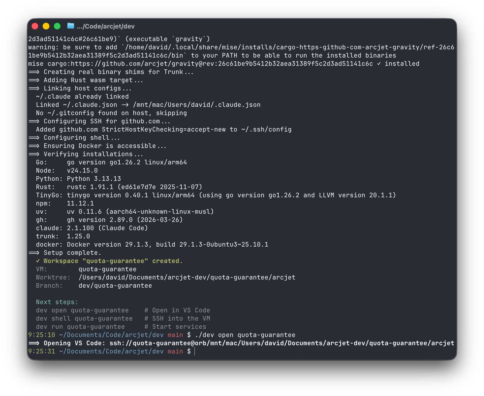 For the last few years we’ve been using a local devcontainer for Arcjet’s development environment. This setup provided benefits including: consistent tooling versions across the team, a production-close replica with all services running locally, and a security boundary that keeps supply chain risks isolated from the developer's host machine.